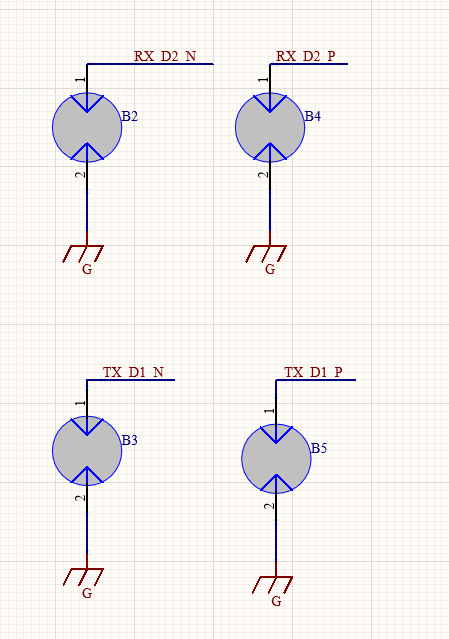 一般浪涌应该是共模浪涌,但测试也要求测差模。 差模防护主要靠这部分TVS: