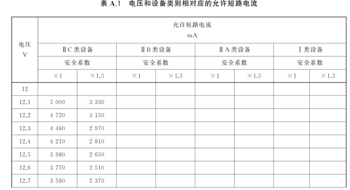 参考GB/T 3836.4 的表A.1 电压和设备类别相对应的允许短路电流