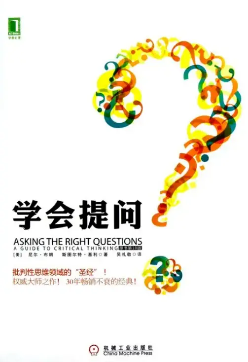 作者:美国 尼尔·布朗,斯图尔特·基利,2013年出版。全书看完,感觉这本书其实应该叫《学会解释》,如果按照书中的方式提问,你的家人朋友们可能会很讨厌你,因为连续不断的深入提问,真的会让别人很难受。但如果反过来想,用书中的方式方法去解释或阐述问题,那么你的观点将会很有说服力。